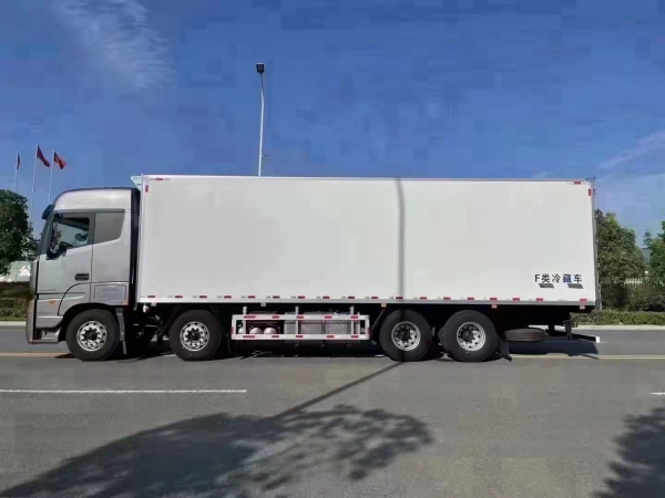 國六福田歐曼前四后八9.4米冷藏車,整車型號:BJ5329XLCY6GRL-02,整車尺寸:12000*2600*3950(mm),廂體內(nèi)徑尺寸:9350*2450*2500(mm),福田康明斯柴油發(fā)動機(jī)490馬力,1200輪胎,16擋變速箱,方向助力,氣囊座椅,多功能方向盤,原廠空調(diào),中控鎖,遙控鑰匙,電動門窗,行駛記錄儀,氣剎,ABS,軸距2100+4400+1350mm。